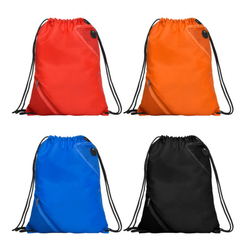 Il design funzionale include cordoncini regolabili per una chiusura sicura e personalizzata, occhielli metallici che garantiscono robustezza, tasche frontali in tessuto microforato per una migliore aerazione e un pratico foro per l’uscita dei cavi, perfetto per auricolari o caricabatterie.