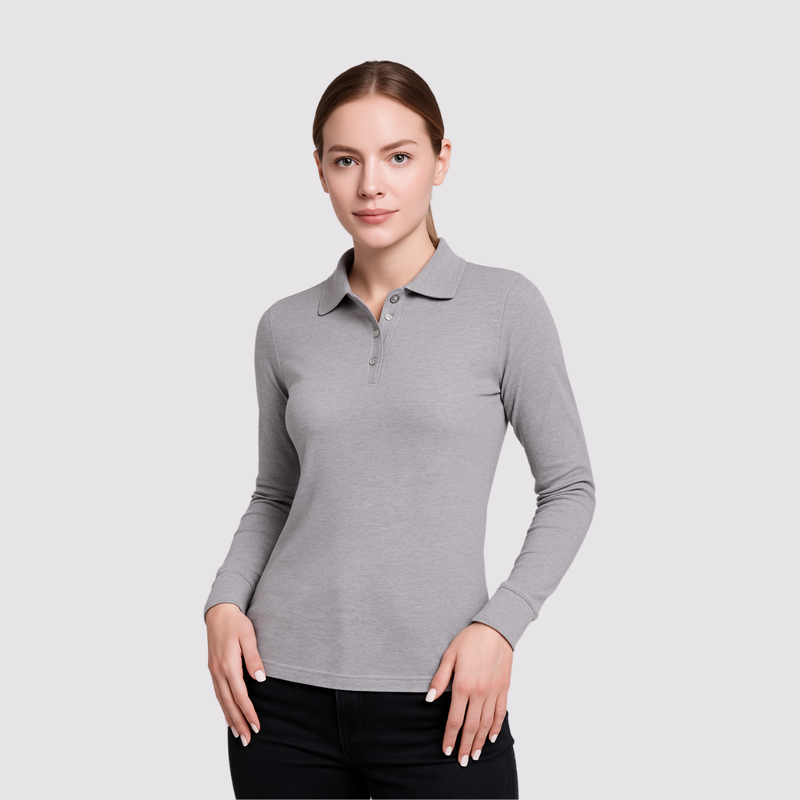Polo dal design elegante e aderente, realizzata in piqué 100% cotone da 220 g/m², morbido, traspirante e resistente. Nella variante grigio vigoré, la composizione è 85% cotone / 15% viscosa, per un effetto mélange raffinato.