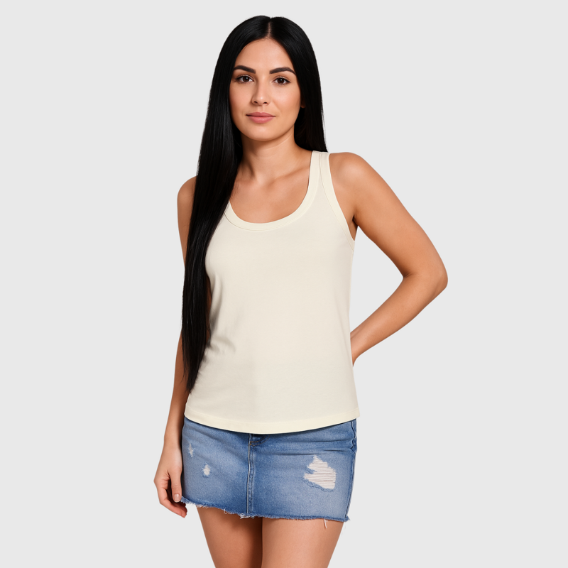 T-shirt da donna in 100% cotone (grigio vigoré: 85% cotone, 15% viscosa) con spalline larghe per un look femminile e contemporaneo. Scollo e giromanica rifiniti in costina 1x1 per comfort ed elasticità, orlo arrotondato per valorizzare la silhouette. Cuciture laterali per una vestibilità perfetta. Ideale da sola in estate o come base sotto cardigan e giacche leggere.